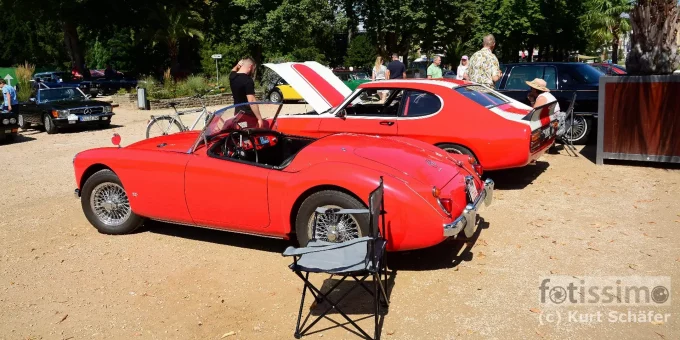 Bei einem Rundgang sahen die zahlreichen Zuschauer neben dem Horch-Cabrio von Christian Qualmann, einen eher selten zu sehenden Morgan-ThreeWheeler, eine Ansammlung von 7 Triumph TR, diese Gruppe hatte sich im Park zu einem Treffen verabredet, historische Rallyeautos mit den Logos von Opel, Ford und Audi waren zu bestaunen, 3 Ford-Pick-Ups gaben sich die Ehre, der VW-Bully als Camper durfte auch nicht fehlen und dann noch viele weitere automobile Schätze aus Europa und Amerika.
