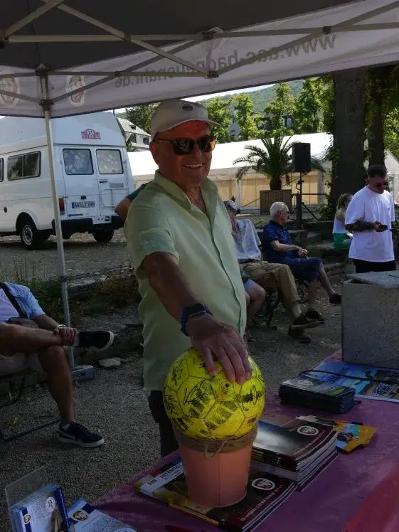 Ein besonderes Objekt für eine zweite Verlosung stiftete Heinz Laufer aus Ahrweiler, ein Fußball, den er am Tag nach der Flut im Apollinaris Stadion gefunden hatte und von der ganzen Mannschaft des 1.FC Köln signieren ließ.