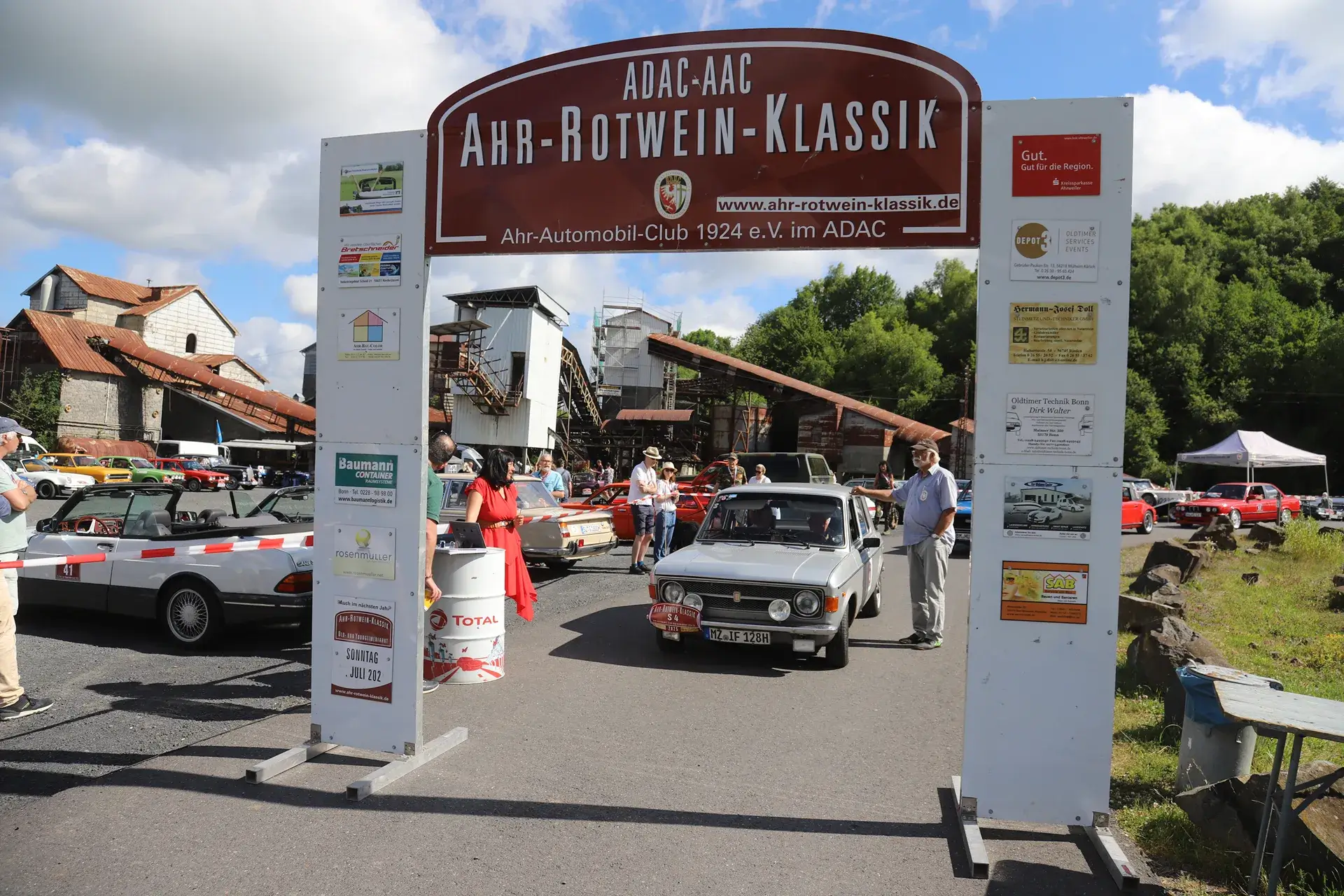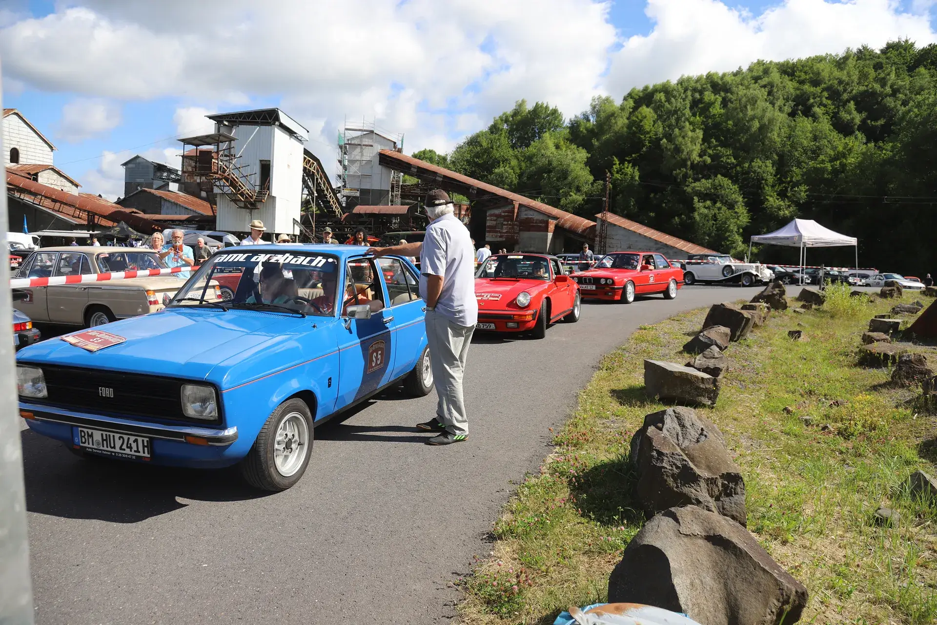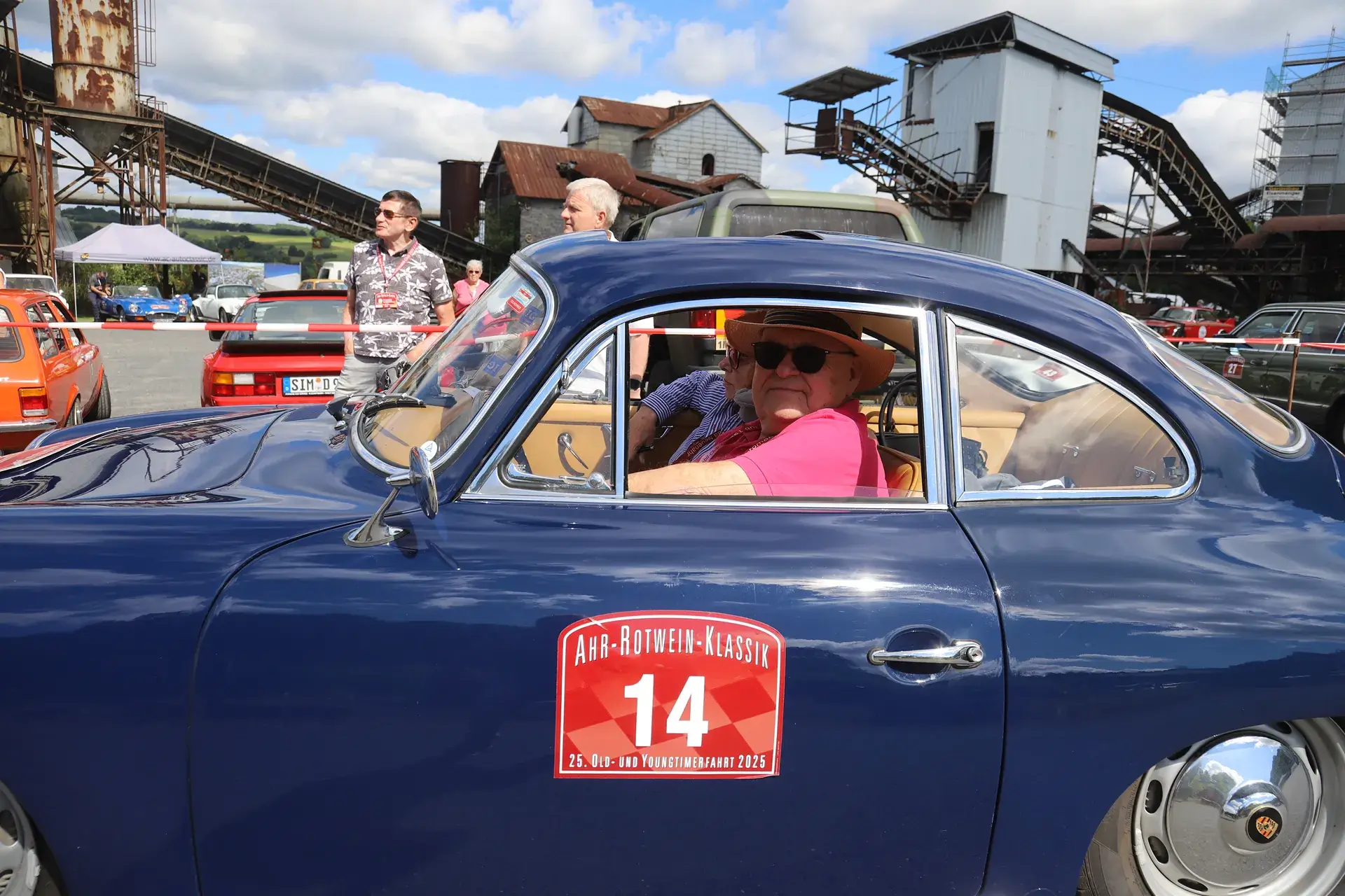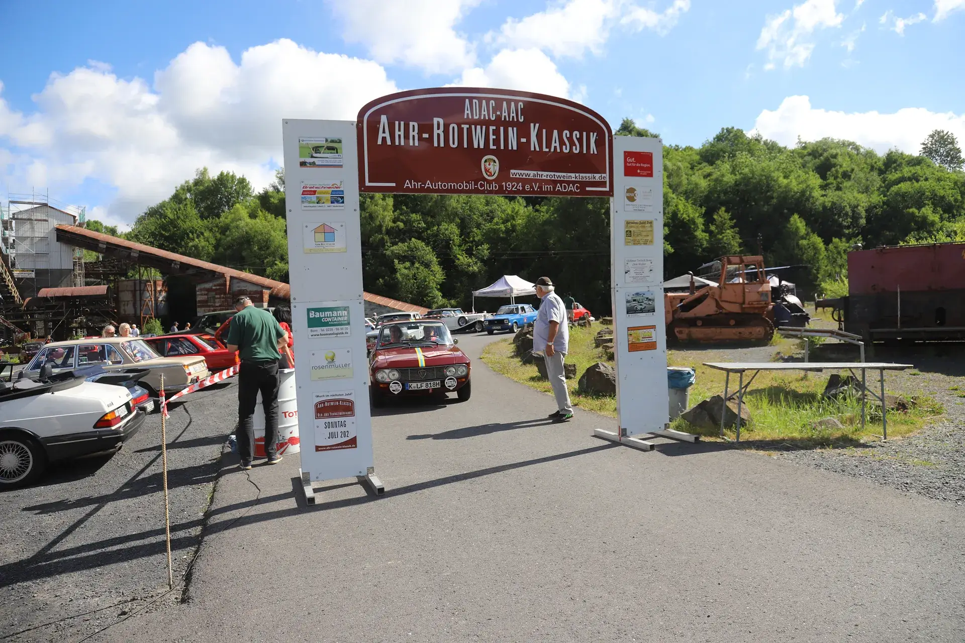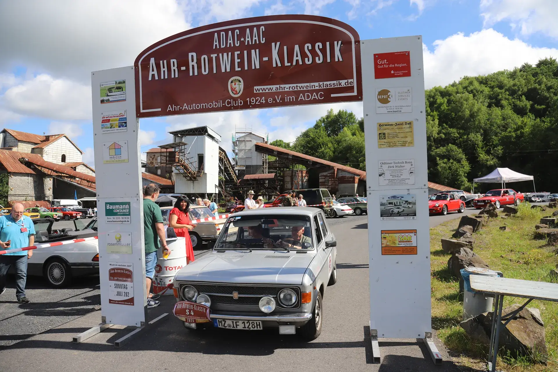Die 51 Automobilisten der Ahr-Rotwein-Klassik starteten pünktlich ab 10.15 Uhr im Stöffel-Park in Enspel und wurden über wunderbare Landstraßen bei herrlichstem Oldtimerwetter nach Weilburg geführt. Unterwegs hatten sie Aufgaben zu lösen – Bildpunkte, Stumme Wächter (Schilder mit Nummern).
