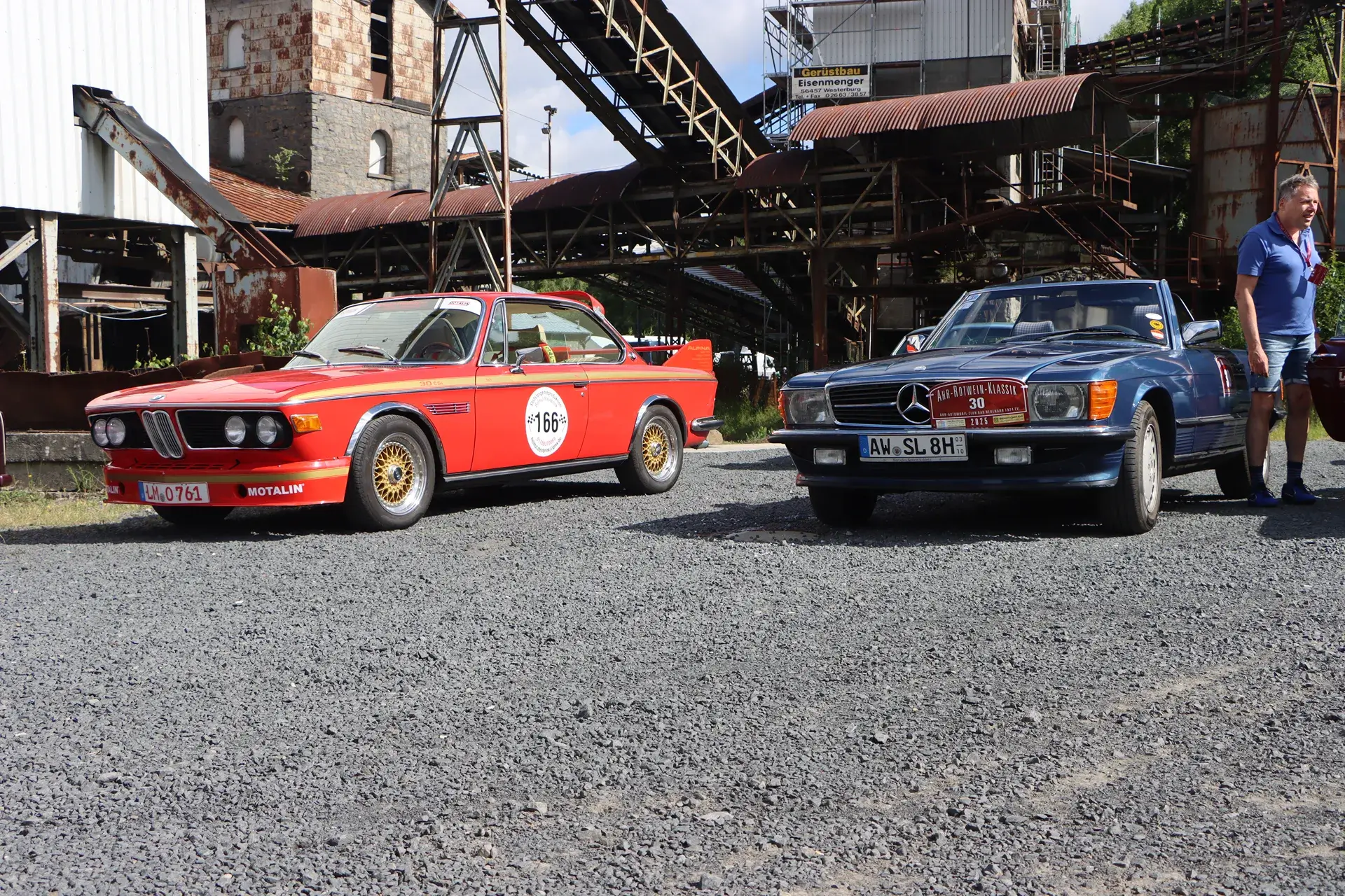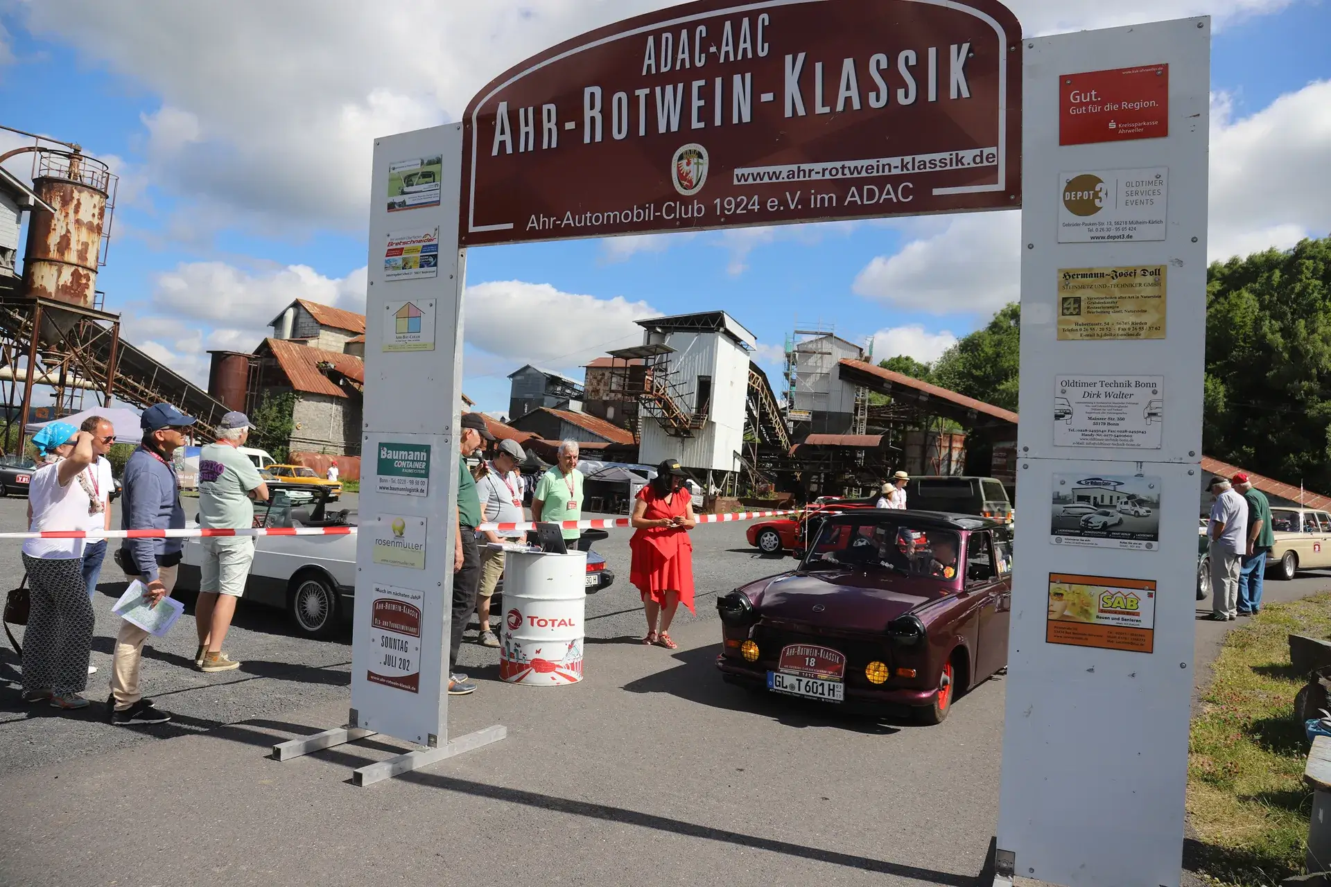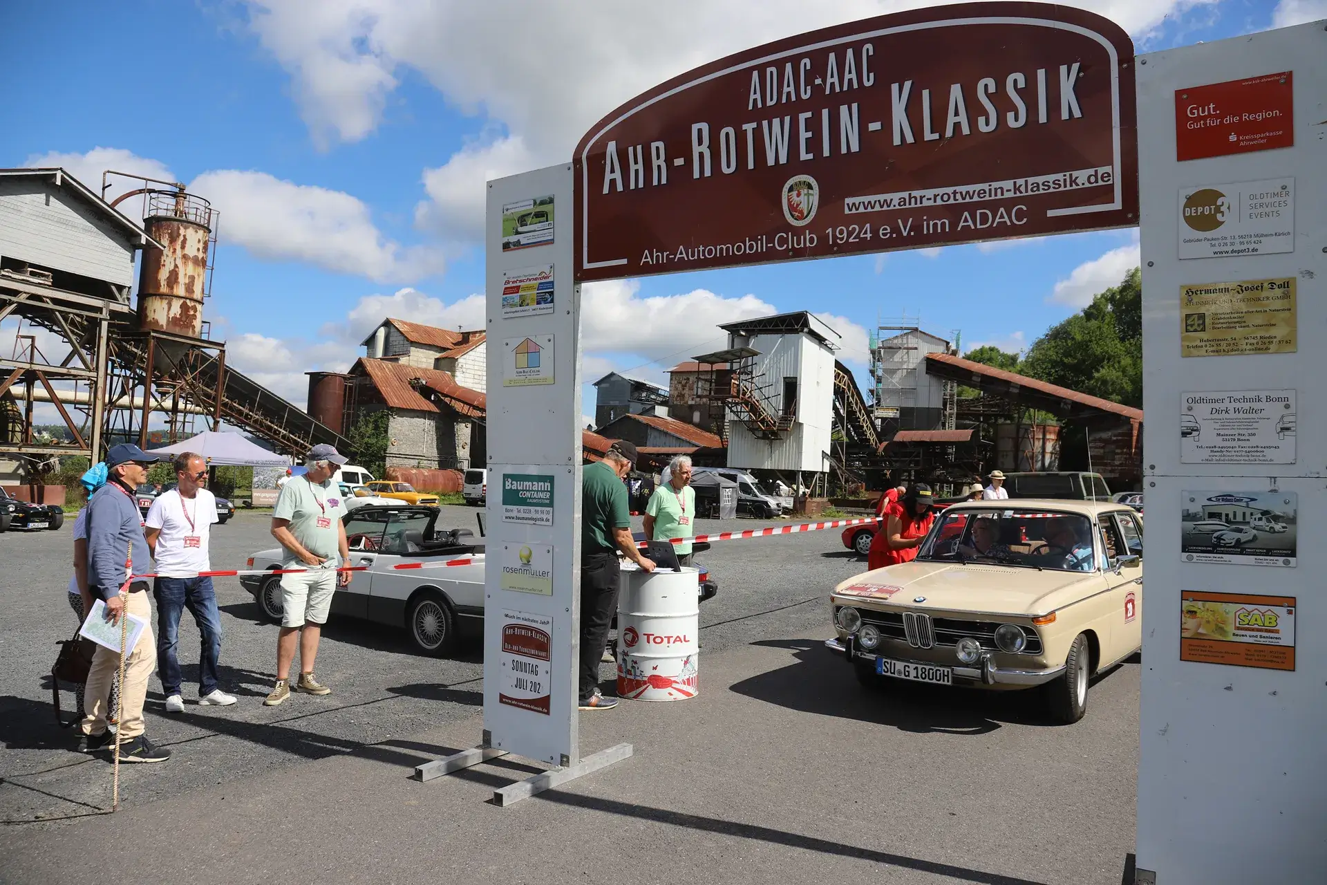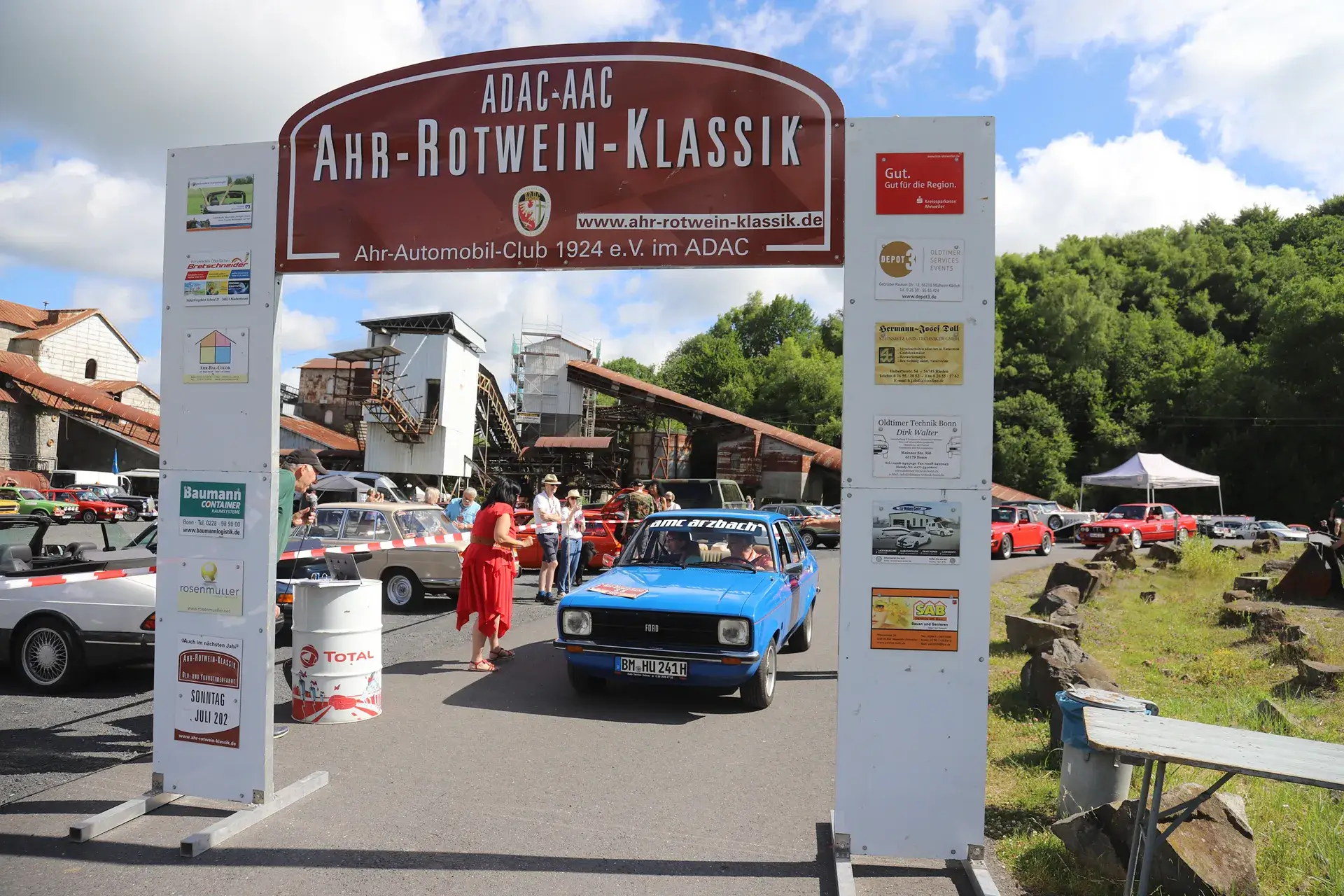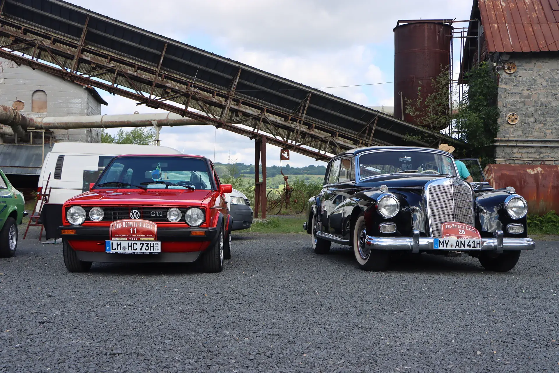Die 51 Automobilisten der Ahr-Rotwein-Klassik starteten pünktlich ab 10.15 Uhr im Stöffel-Park in Enspel und wurden über wunderbare Landstraßen bei herrlichstem Oldtimerwetter nach Weilburg geführt. Unterwegs hatten sie Aufgaben zu lösen – Bildpunkte, Stumme Wächter (Schilder mit Nummern).