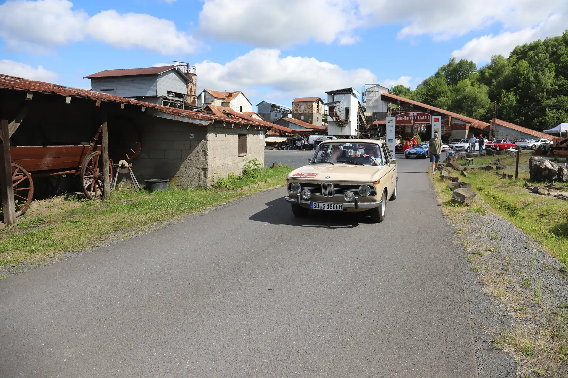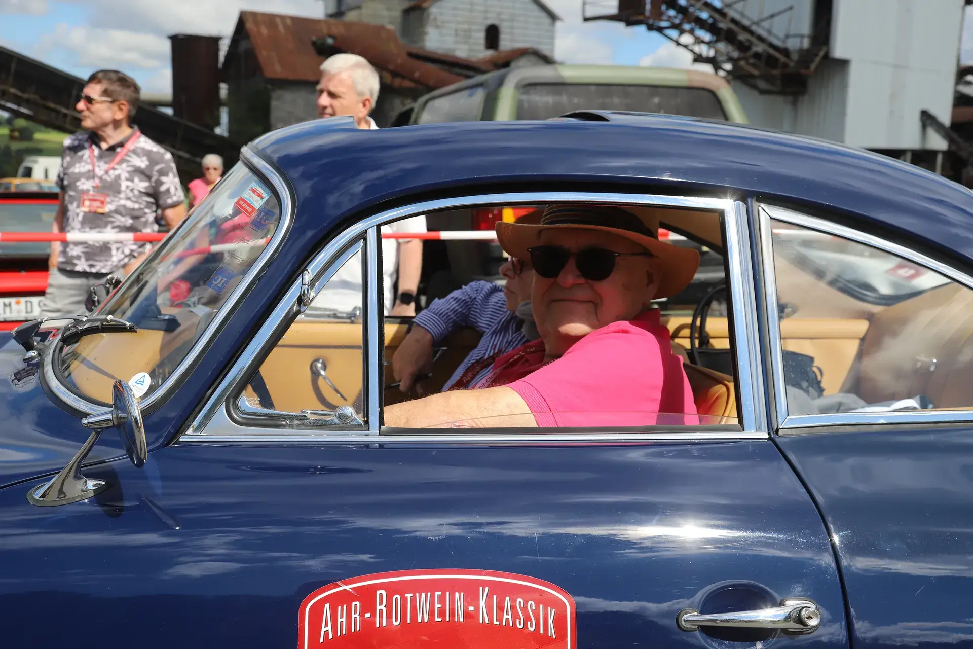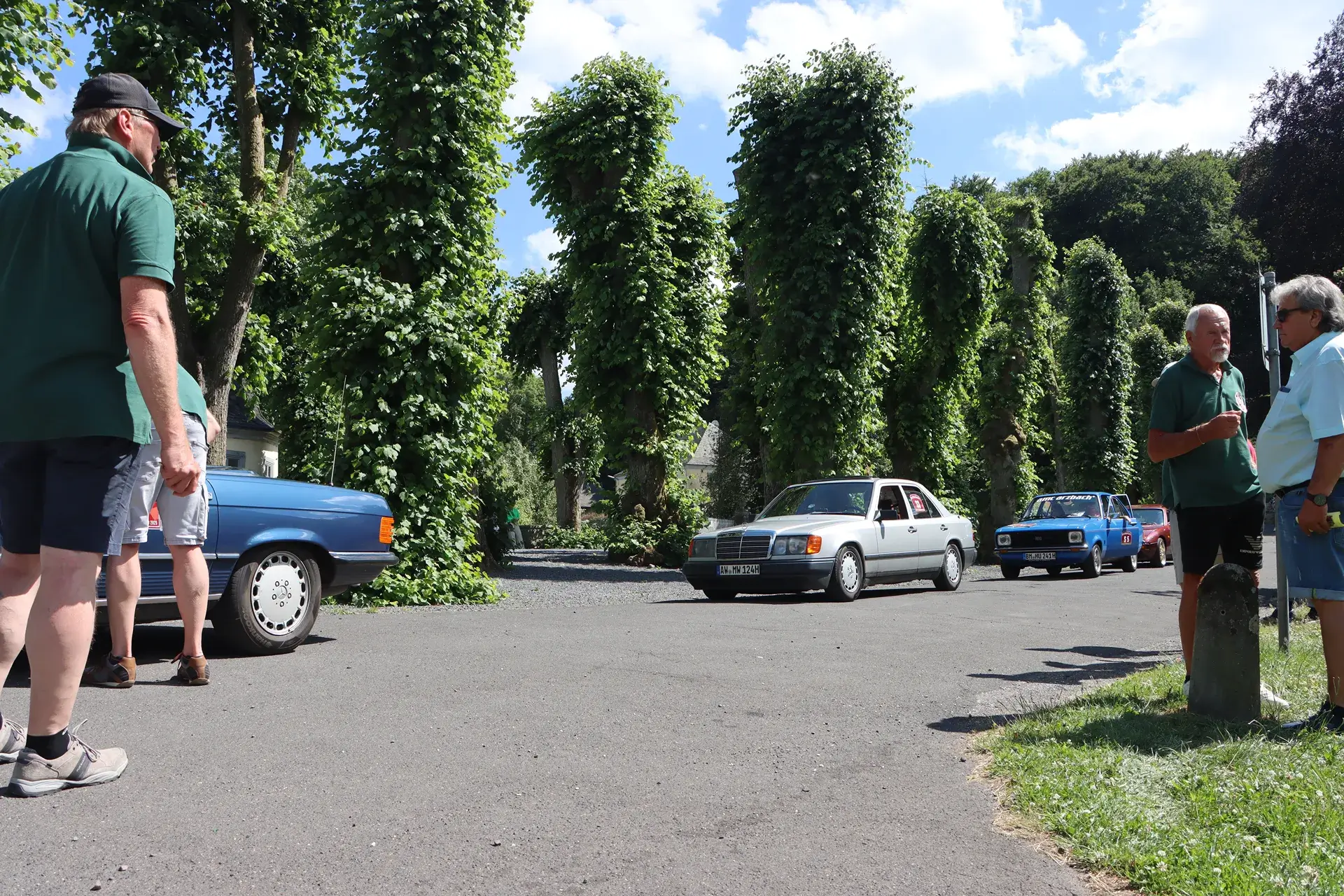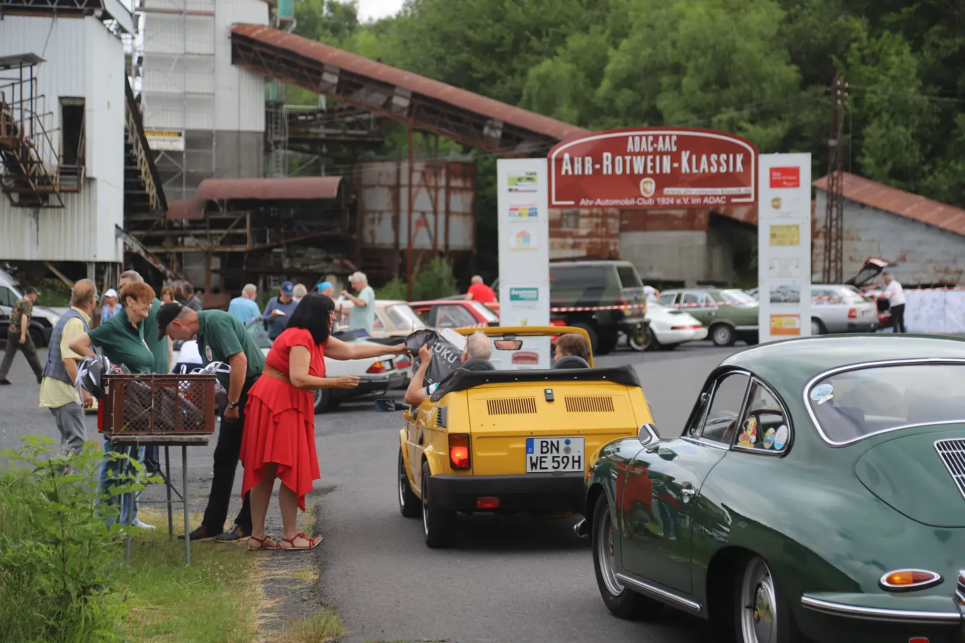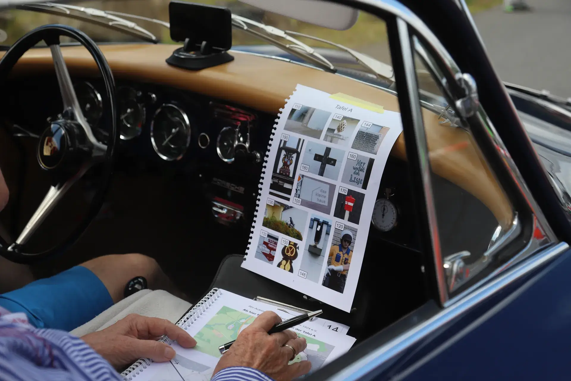Die 51 Automobilisten der Ahr-Rotwein-Klassik starteten pünktlich ab 10.15 Uhr im Stöffel-Park in Enspel und wurden über wunderbare Landstraßen bei herrlichstem Oldtimerwetter nach Weilburg geführt. Unterwegs hatten sie Aufgaben zu lösen – Bildpunkte, Stumme Wächter (Schilder mit Nummern).