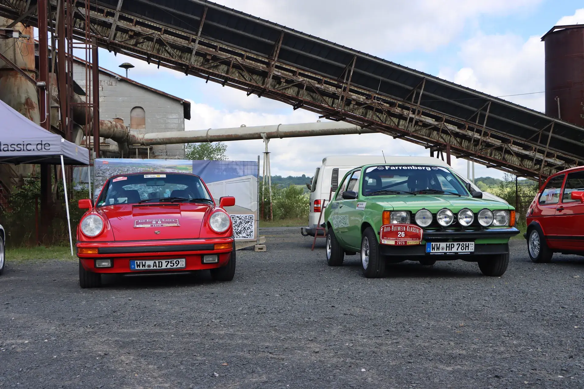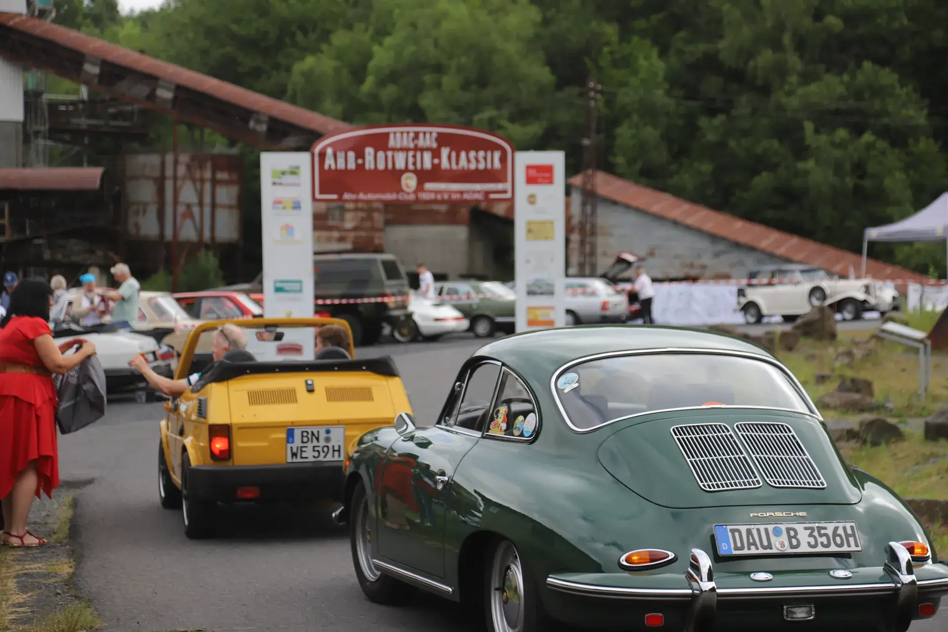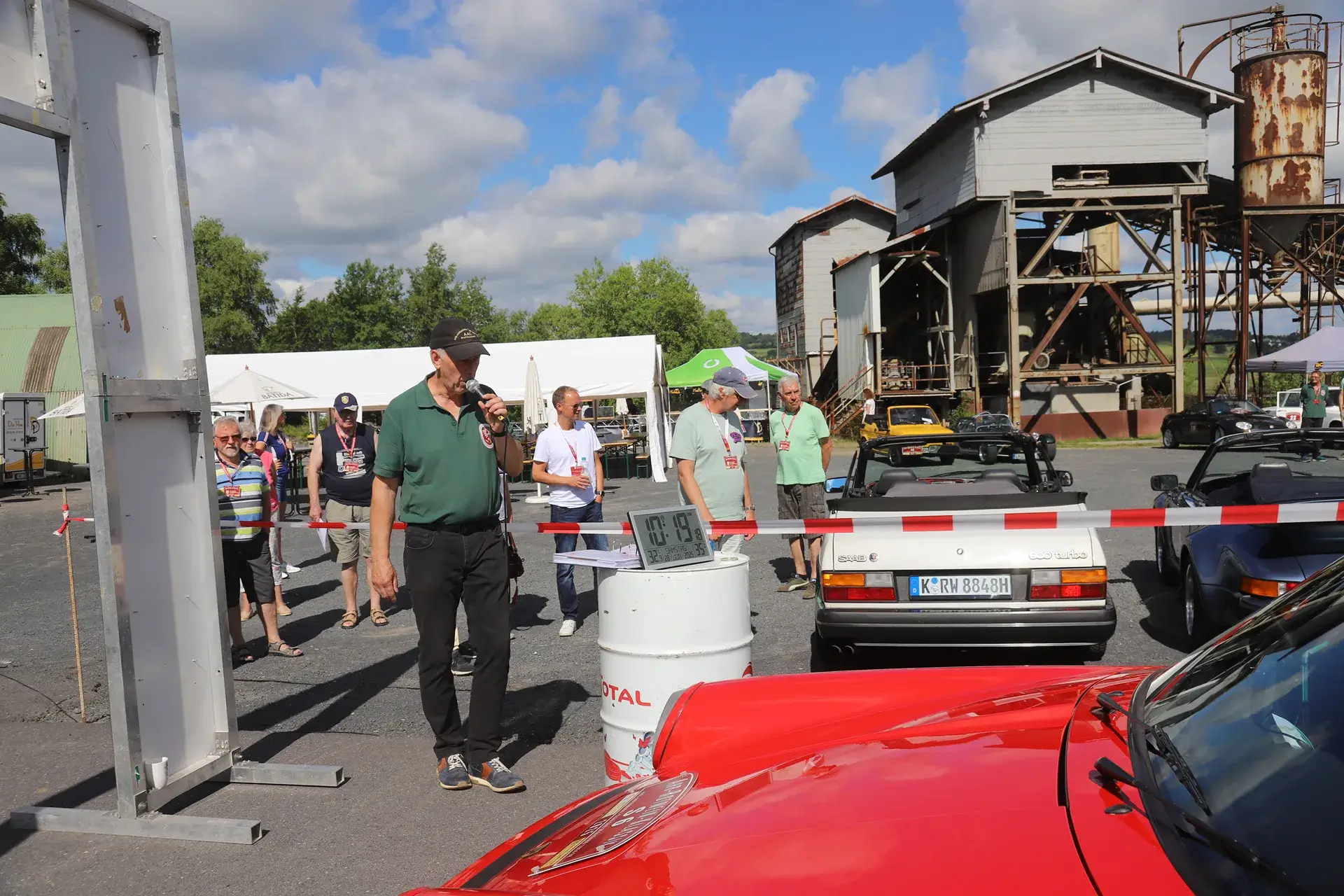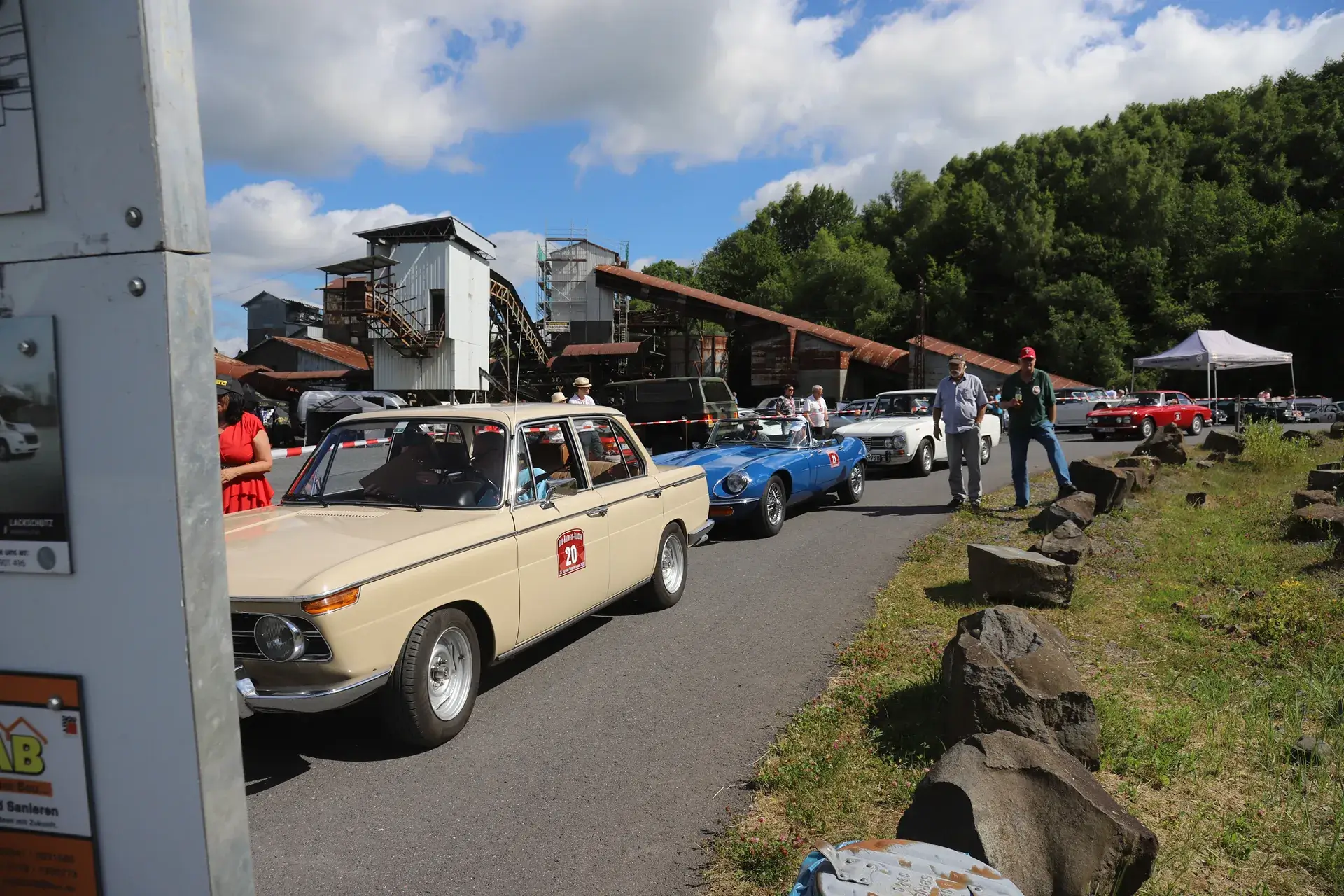 Die 51 Automobilisten der Ahr-Rotwein-Klassik starteten pünktlich ab 10.15 Uhr im Stöffel-Park in Enspel und wurden über wunderbare Landstraßen bei herrlichstem Oldtimerwetter nach Weilburg geführt. Unterwegs hatten sie Aufgaben zu lösen – Bildpunkte, Stumme Wächter (Schilder mit Nummern).