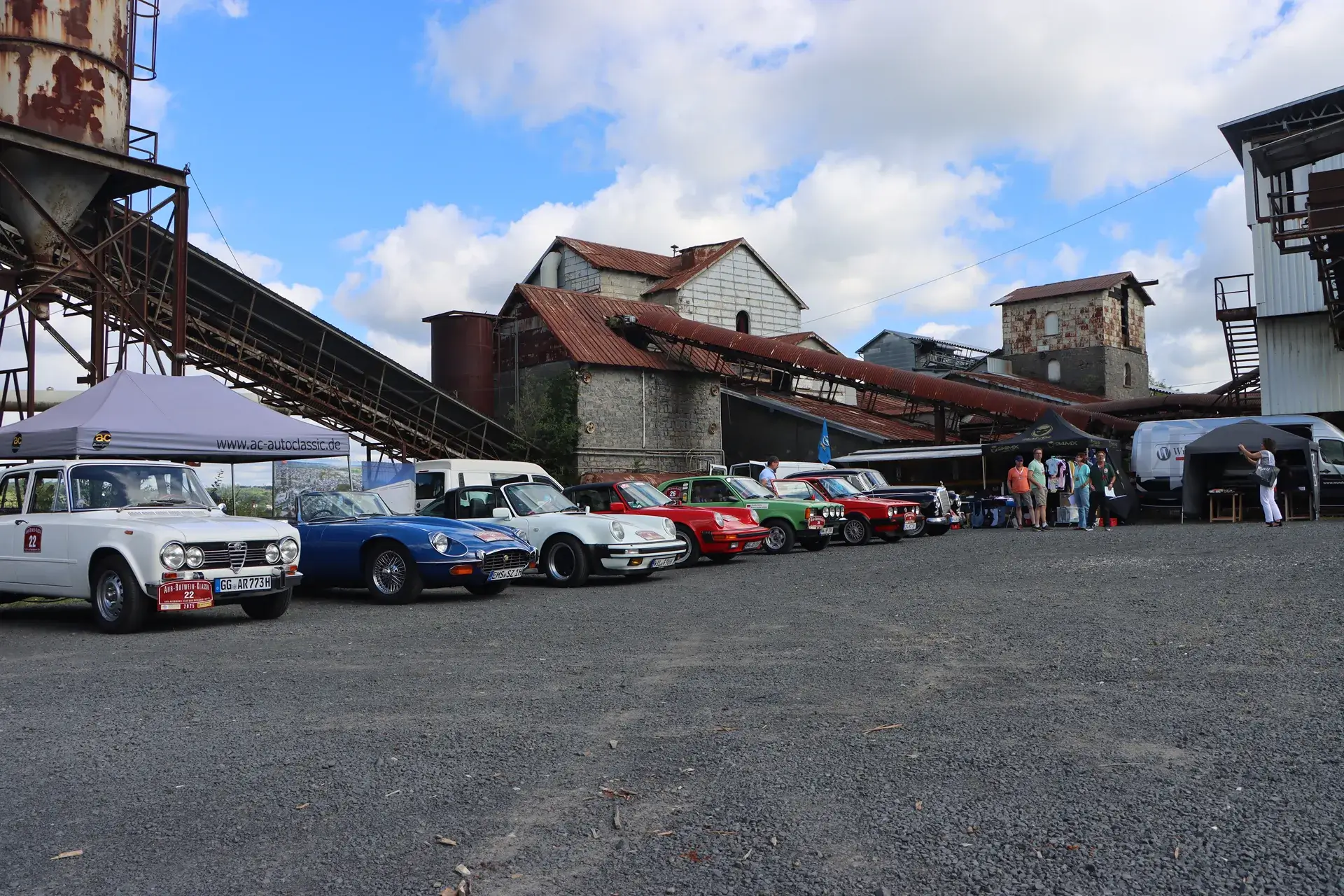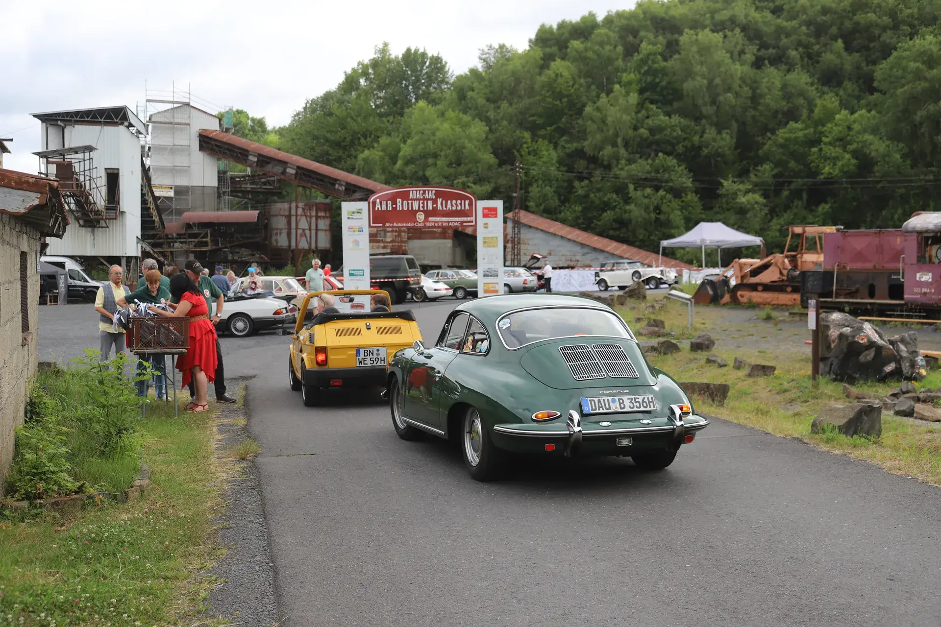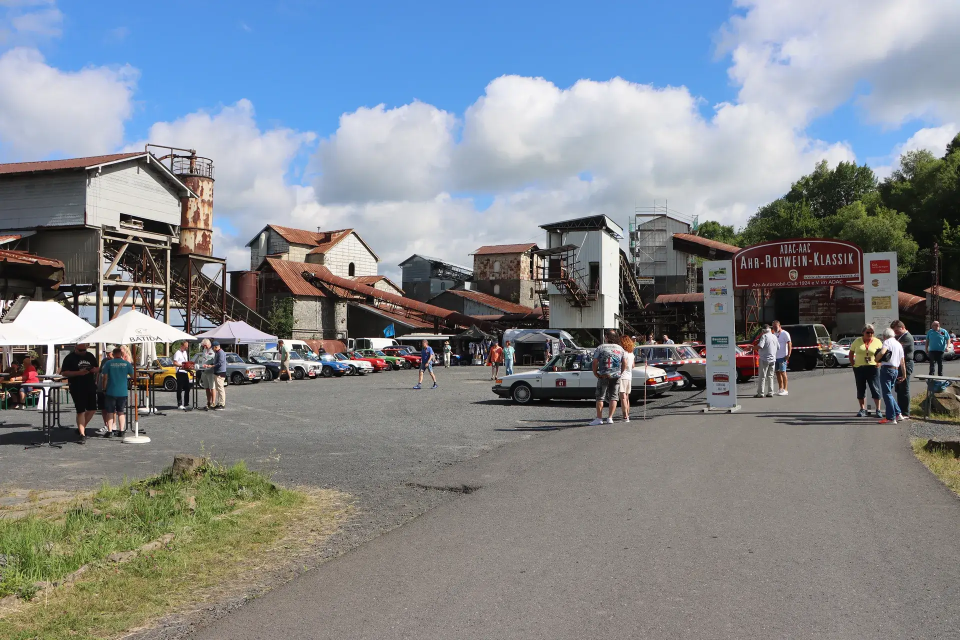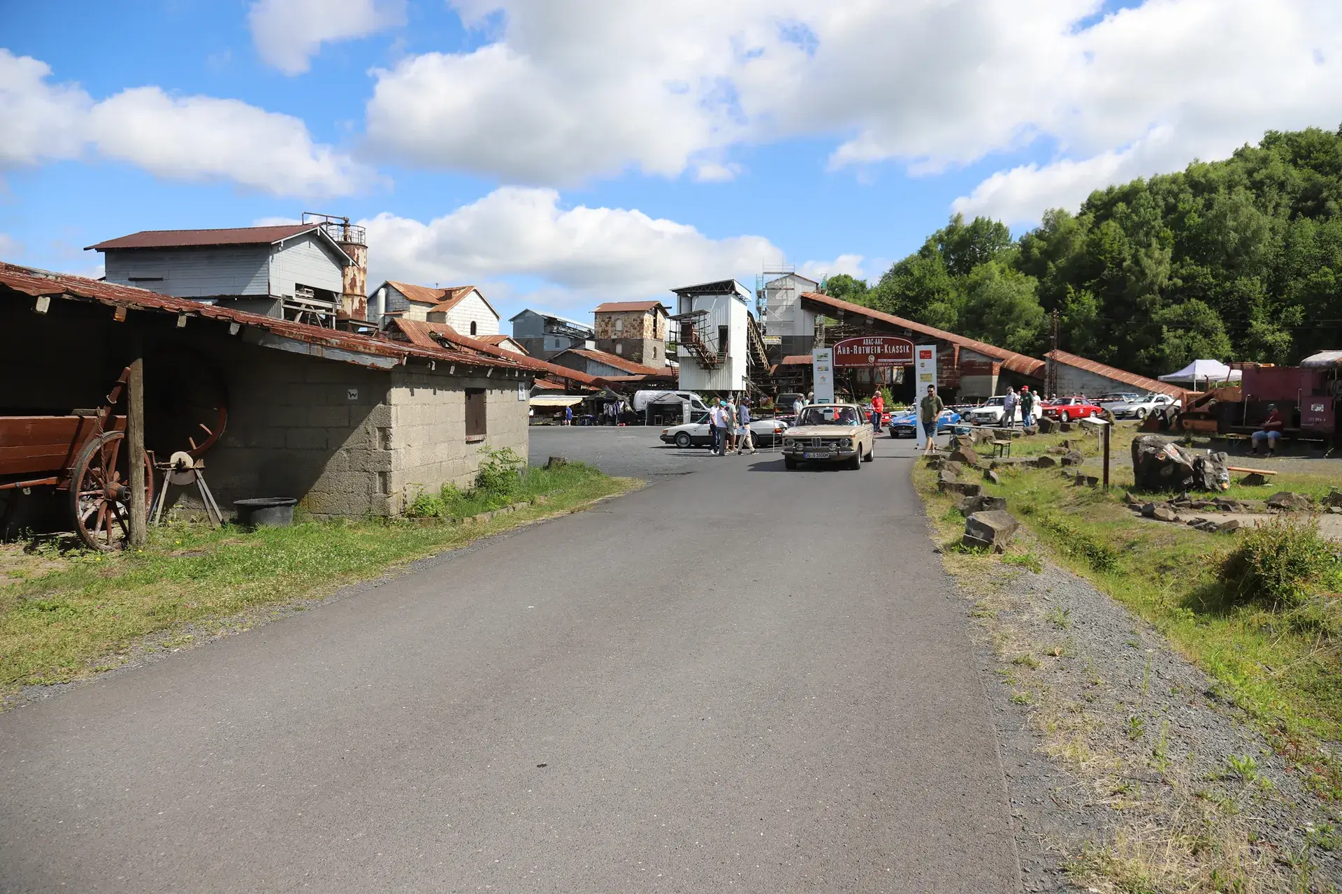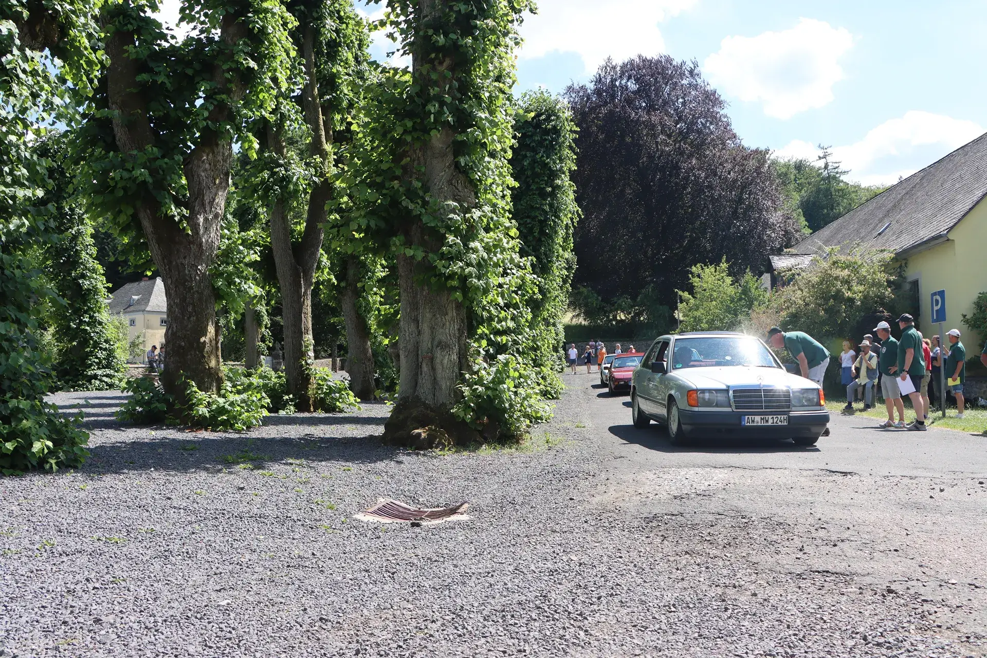 Die 51 Automobilisten der Ahr-Rotwein-Klassik starteten pünktlich ab 10.15 Uhr im Stöffel-Park in Enspel und wurden über wunderbare Landstraßen bei herrlichstem Oldtimerwetter nach Weilburg geführt. Unterwegs hatten sie Aufgaben zu lösen – Bildpunkte, Stumme Wächter (Schilder mit Nummern).