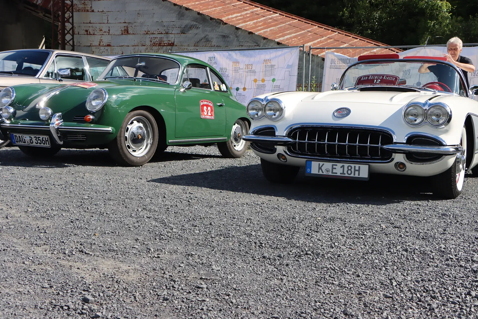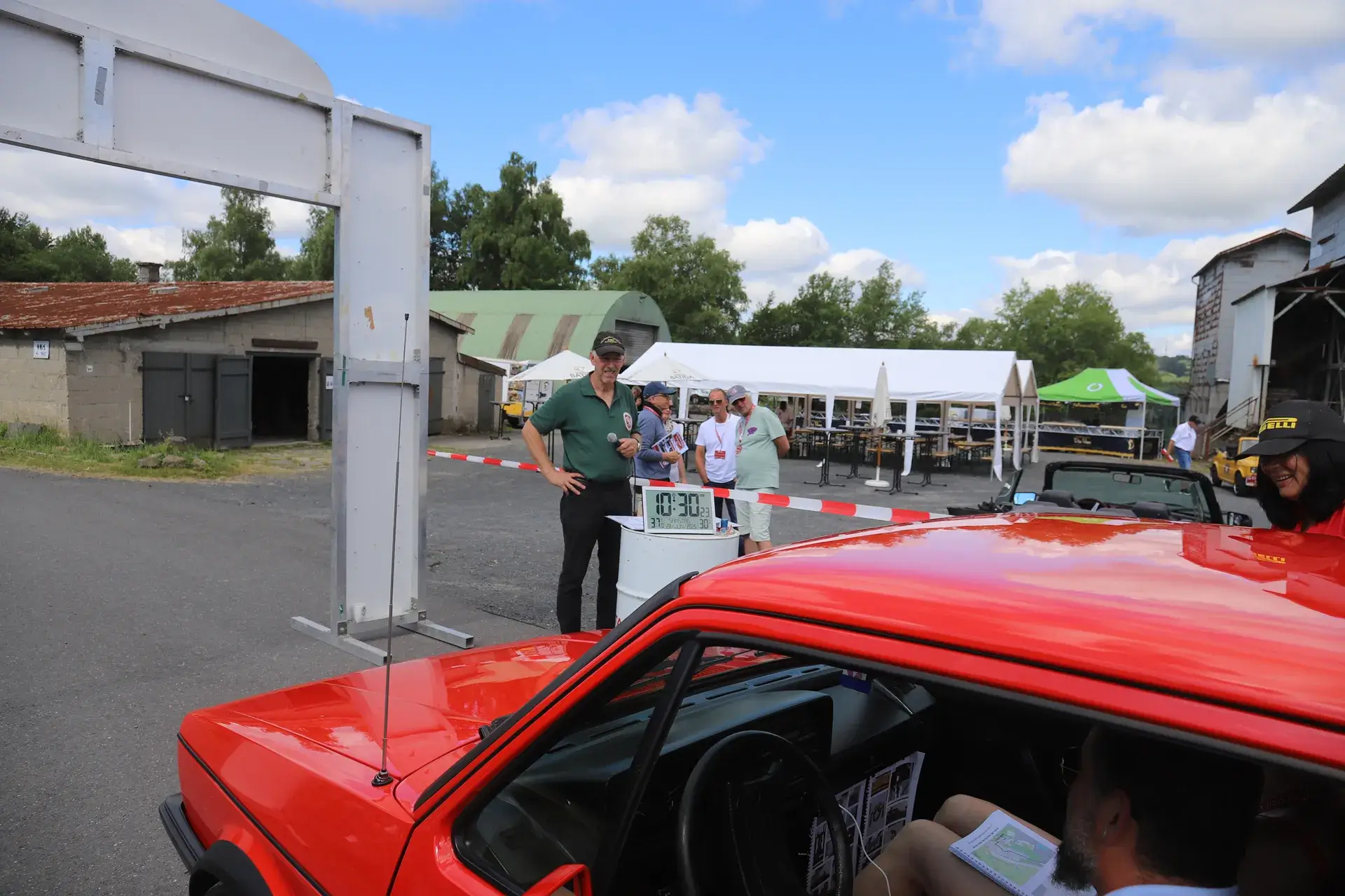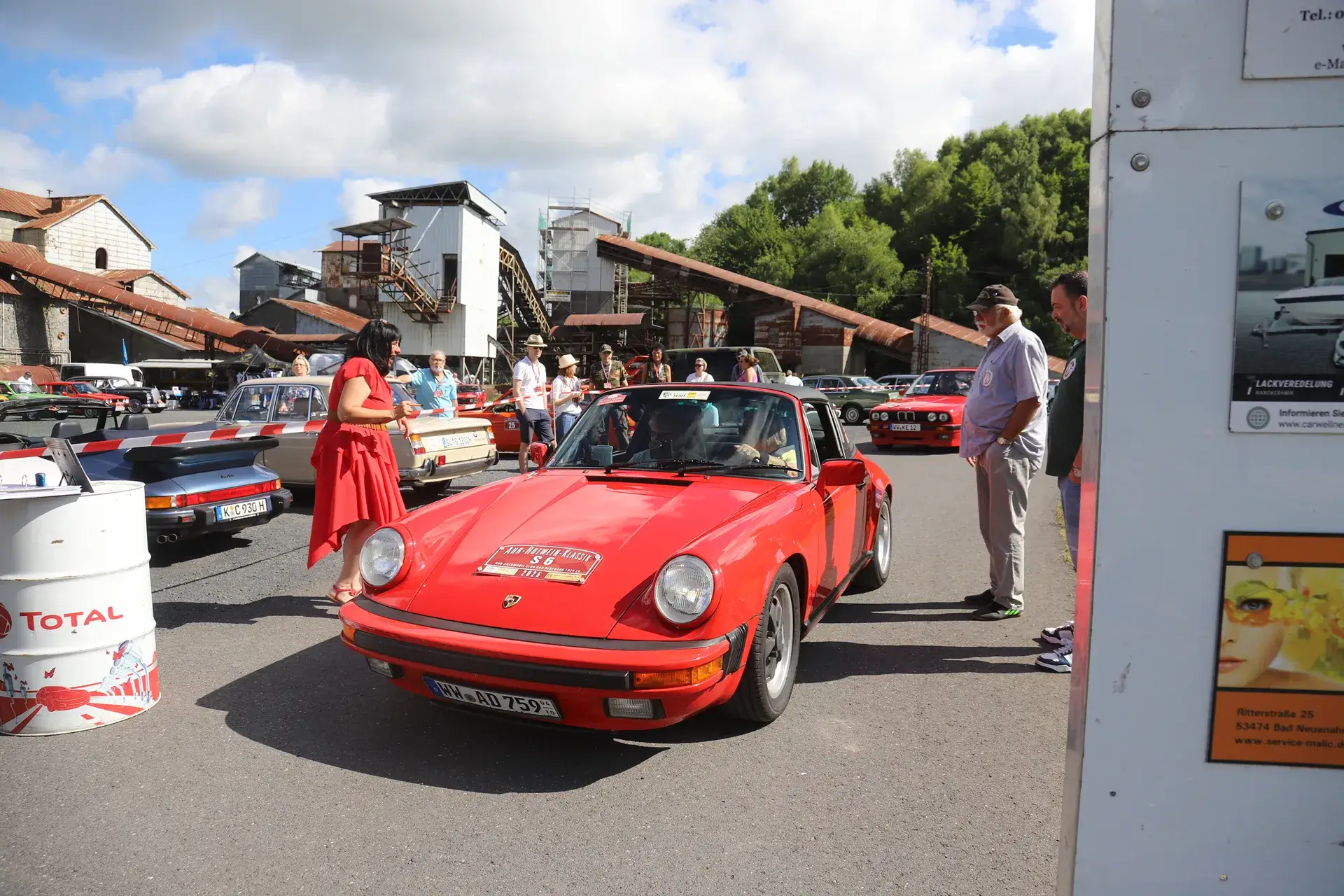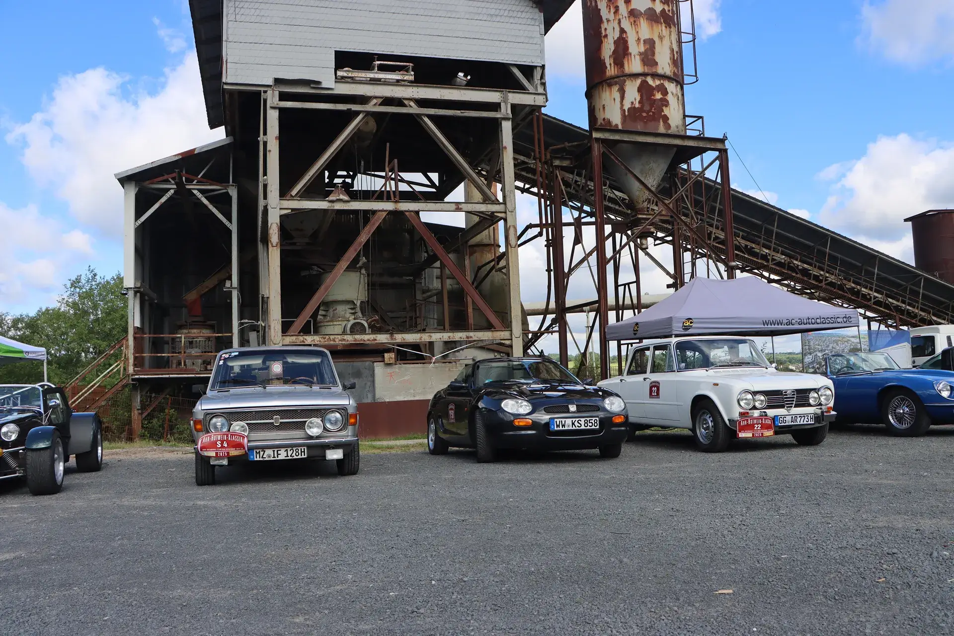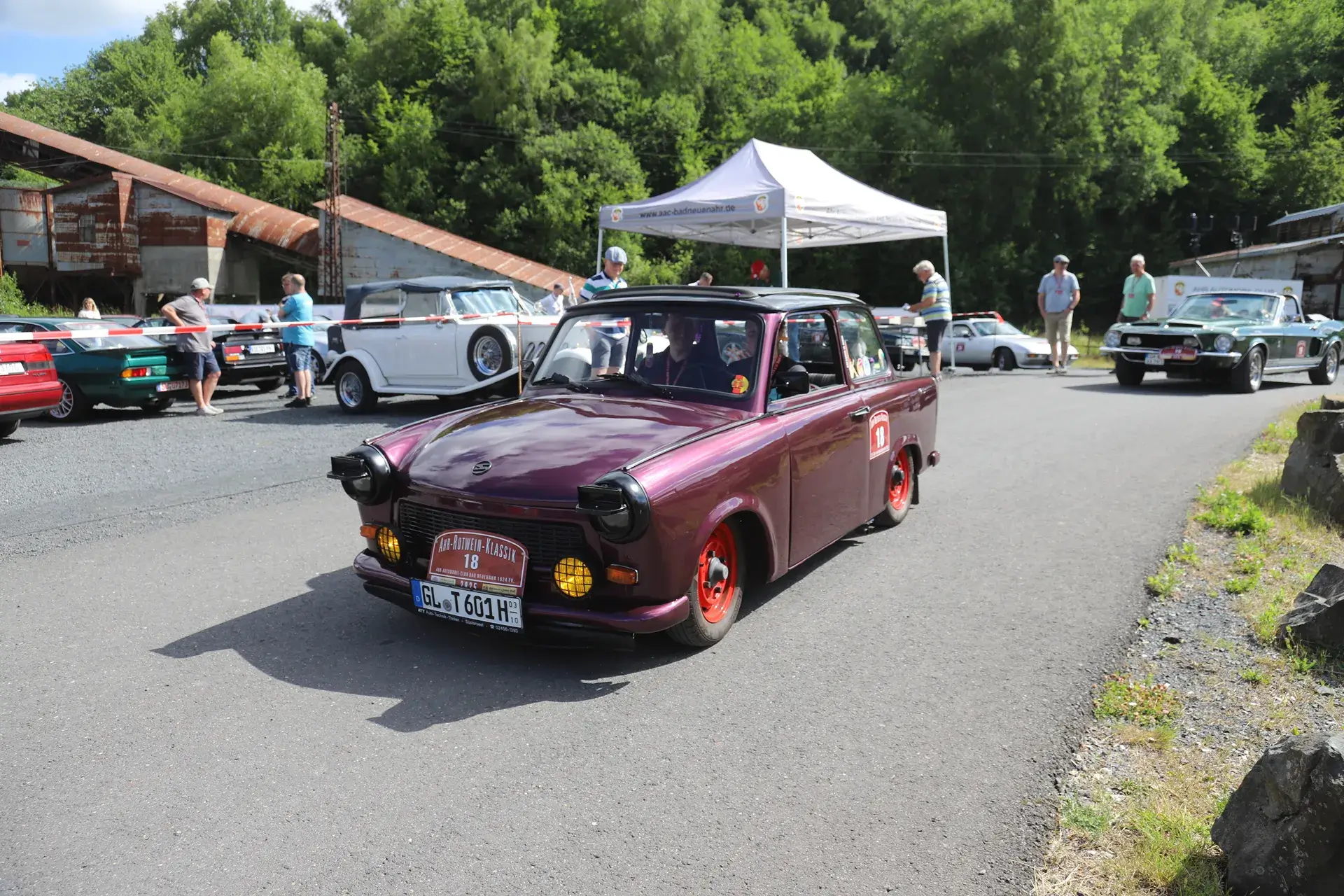 Die 51 Automobilisten der Ahr-Rotwein-Klassik starteten pünktlich ab 10.15 Uhr im Stöffel-Park in Enspel und wurden über wunderbare Landstraßen bei herrlichstem Oldtimerwetter nach Weilburg geführt. Unterwegs hatten sie Aufgaben zu lösen – Bildpunkte, Stumme Wächter (Schilder mit Nummern).