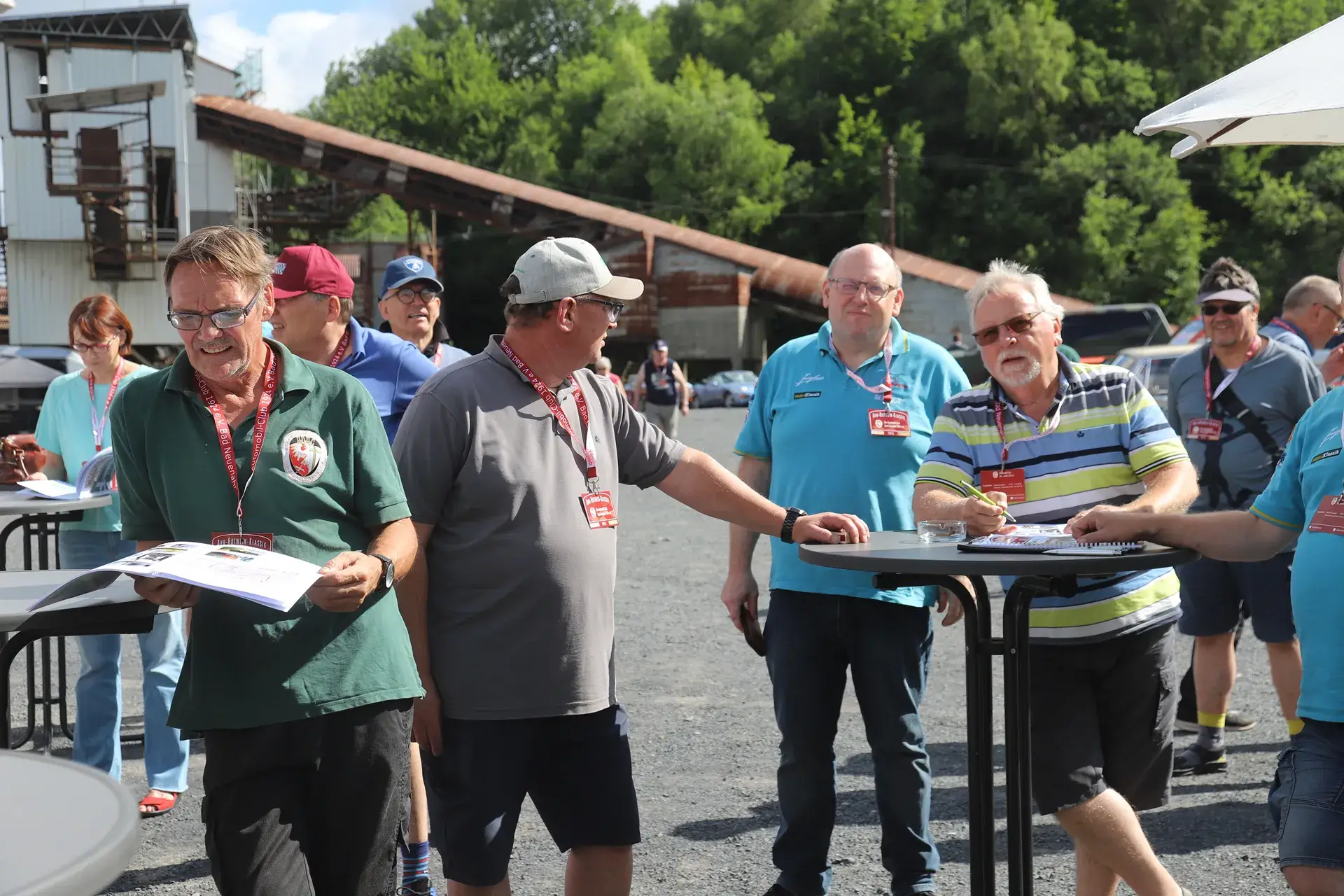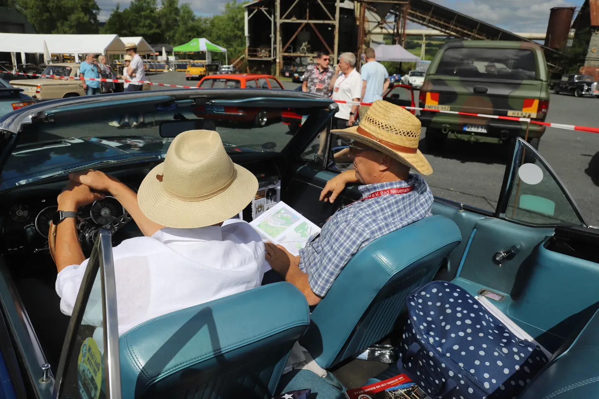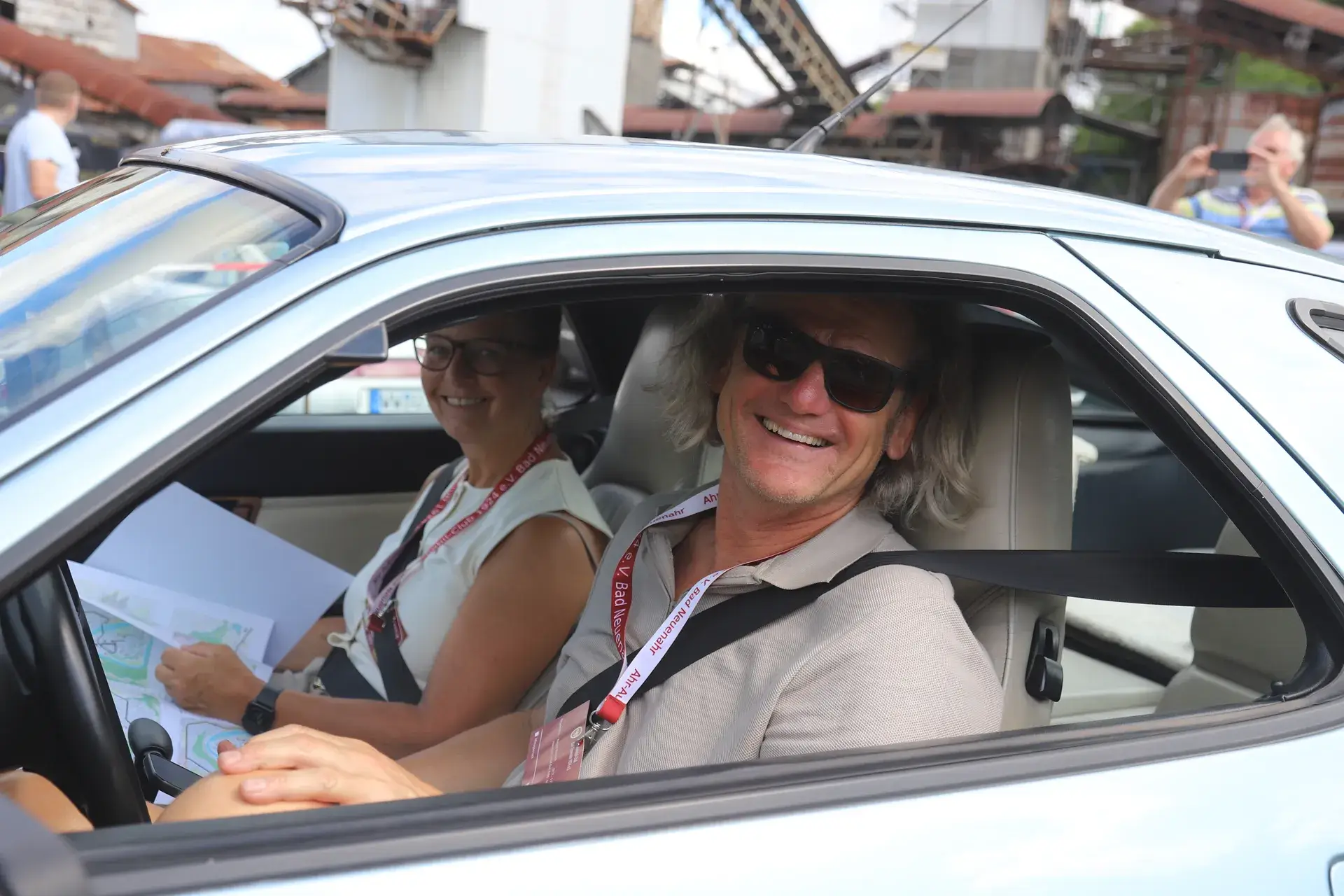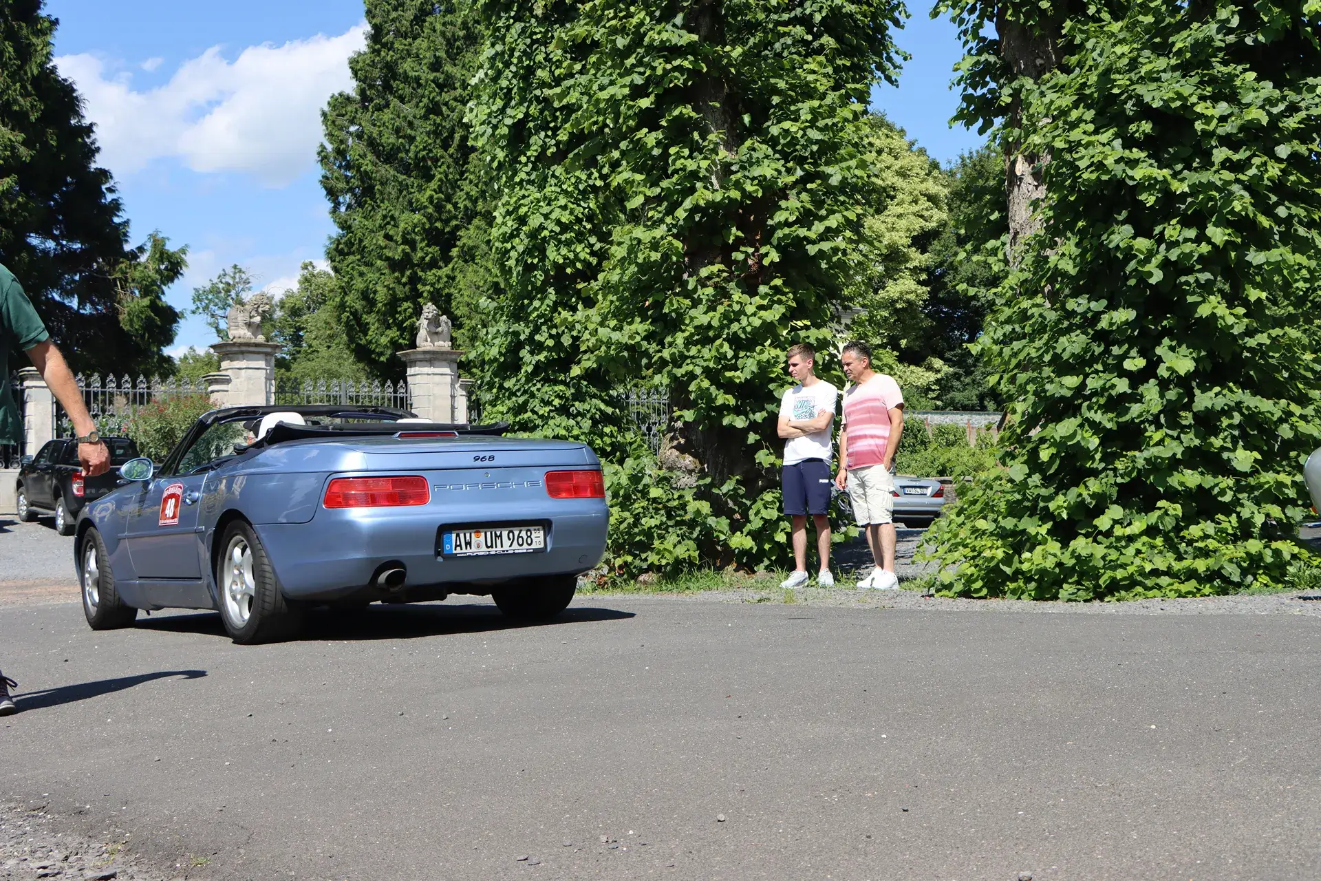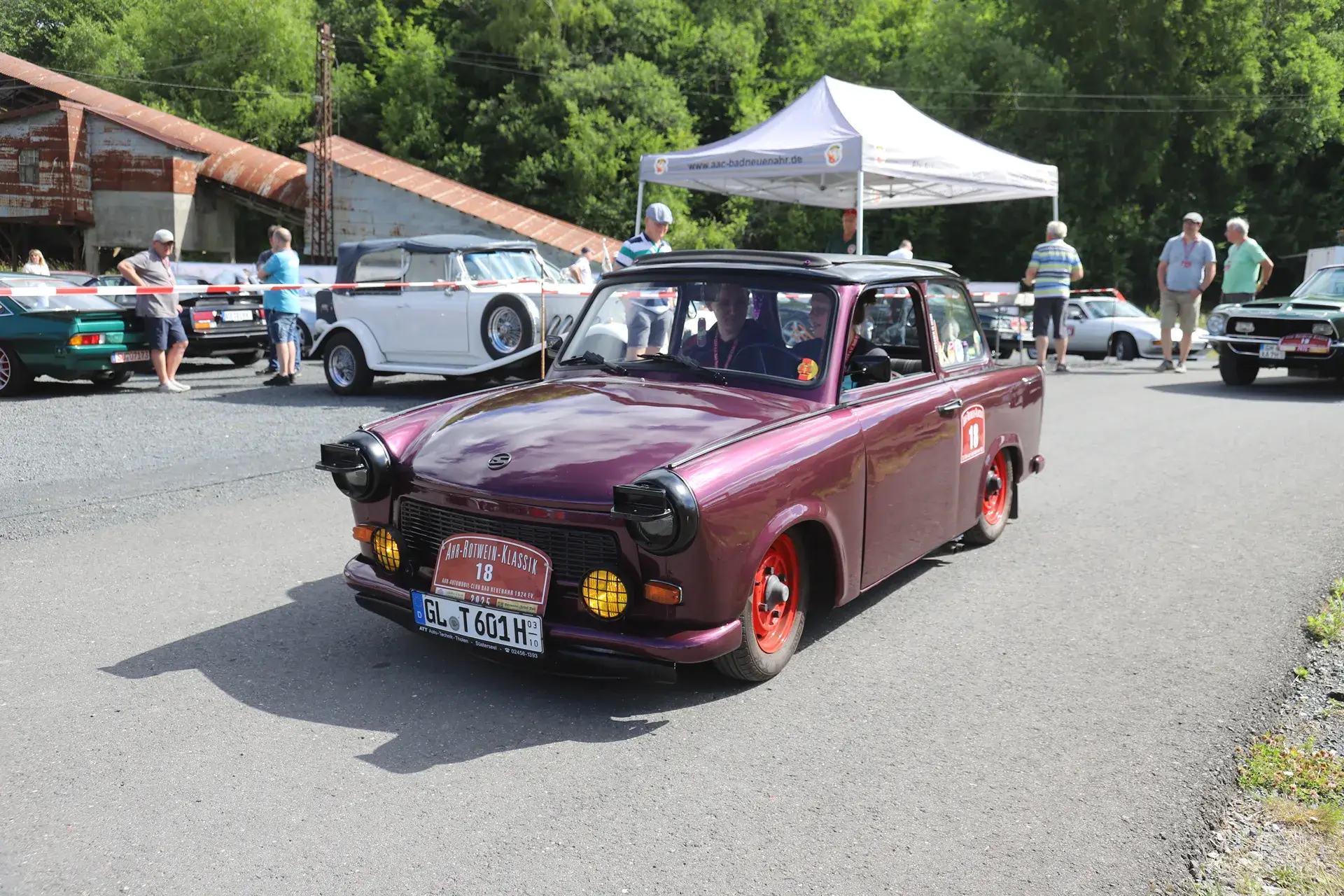 Die 51 Automobilisten der Ahr-Rotwein-Klassik starteten pünktlich ab 10.15 Uhr im Stöffel-Park in Enspel und wurden über wunderbare Landstraßen bei herrlichstem Oldtimerwetter nach Weilburg geführt. Unterwegs hatten sie Aufgaben zu lösen – Bildpunkte, Stumme Wächter (Schilder mit Nummern).