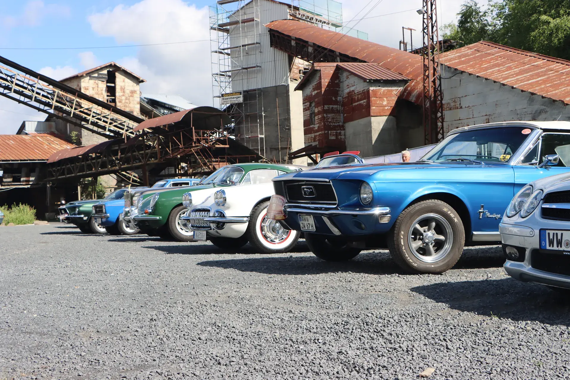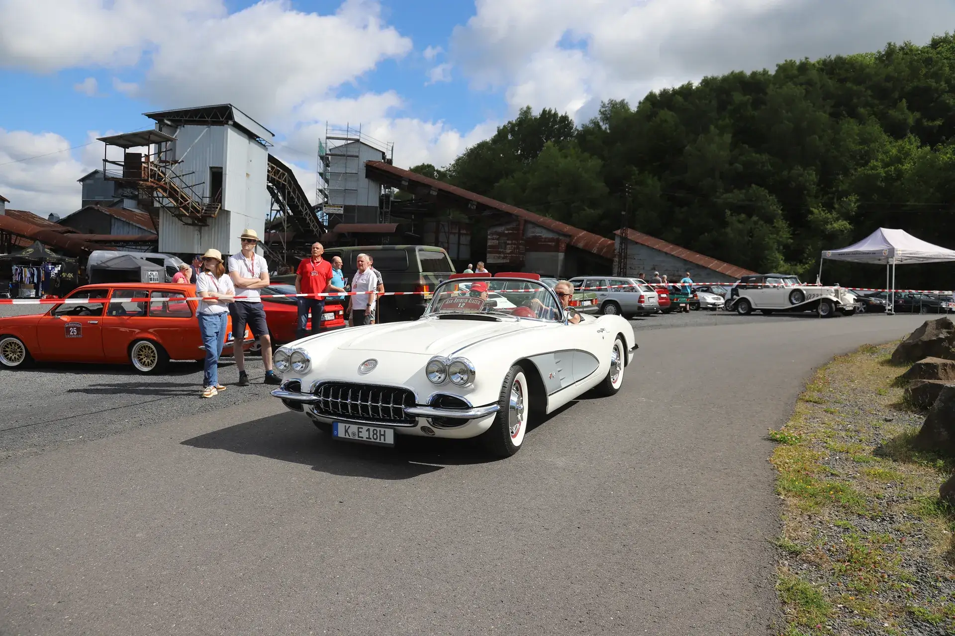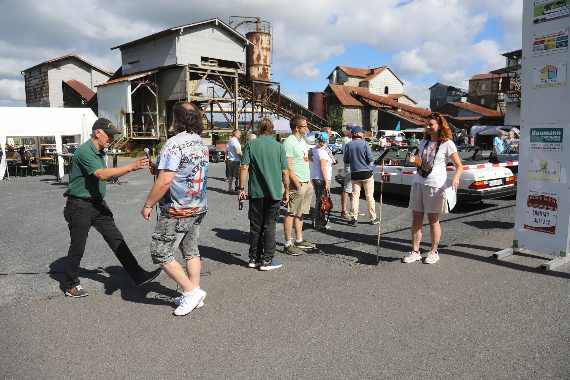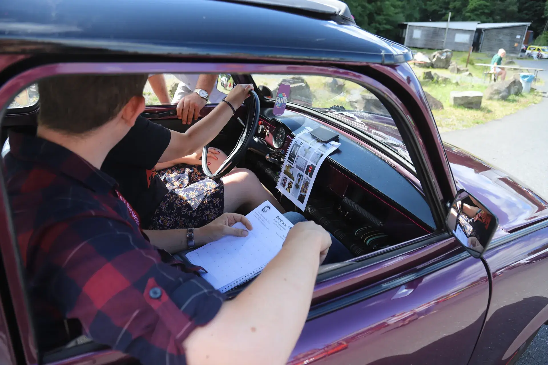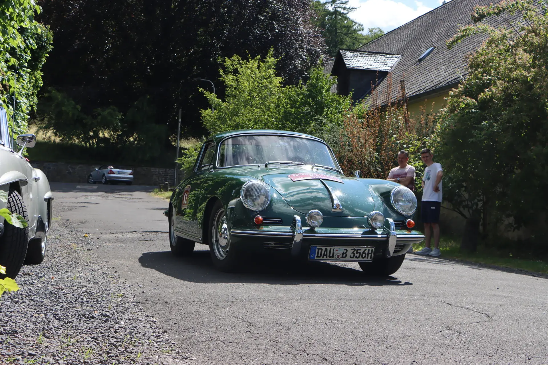 Die 51 Automobilisten der Ahr-Rotwein-Klassik starteten pünktlich ab 10.15 Uhr im Stöffel-Park in Enspel und wurden über wunderbare Landstraßen bei herrlichstem Oldtimerwetter nach Weilburg geführt. Unterwegs hatten sie Aufgaben zu lösen – Bildpunkte, Stumme Wächter (Schilder mit Nummern).