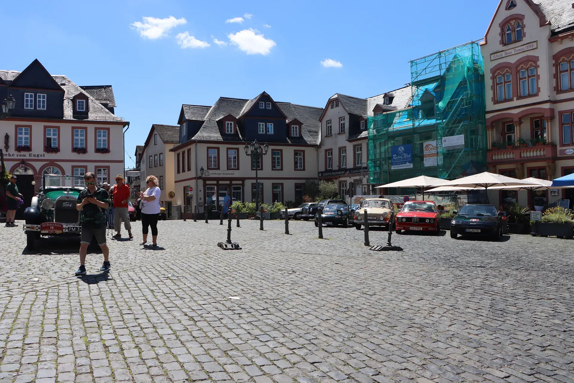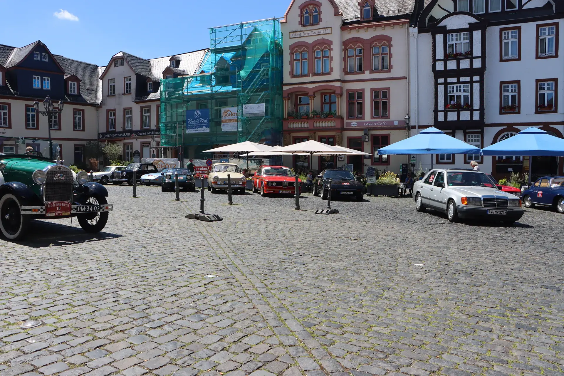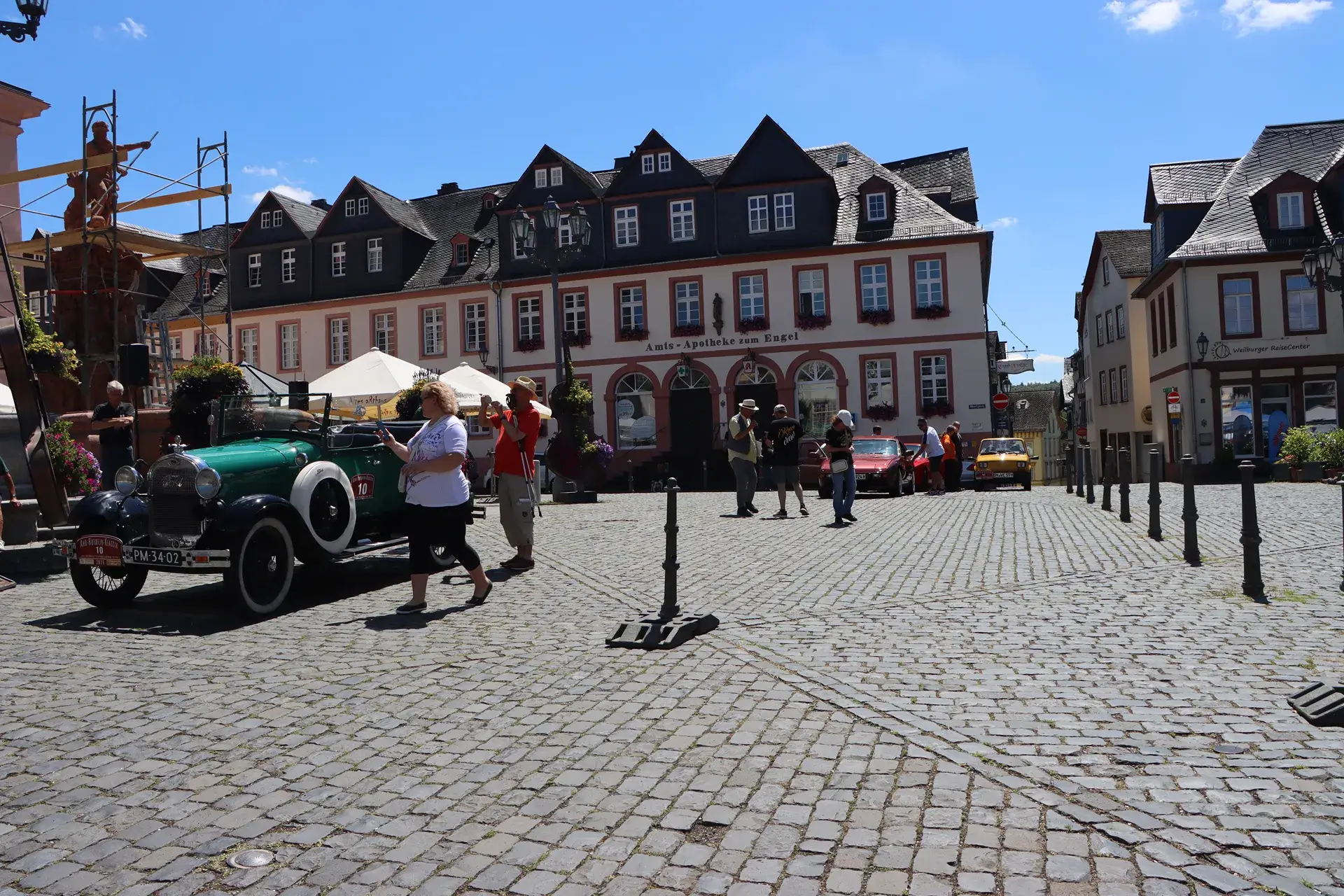 Durchfahrtskontrollen finden, den rechten Weg innerhalb eines Strichcods orten -, bevor auf dem Markplatz in Weilburg eine kleine Pause mit Vorstellung der Fahrzeuge durch den Oldtimerkenner Bernd Schultz aus Mörfelden in lockerer Atmosphäre stattfand.