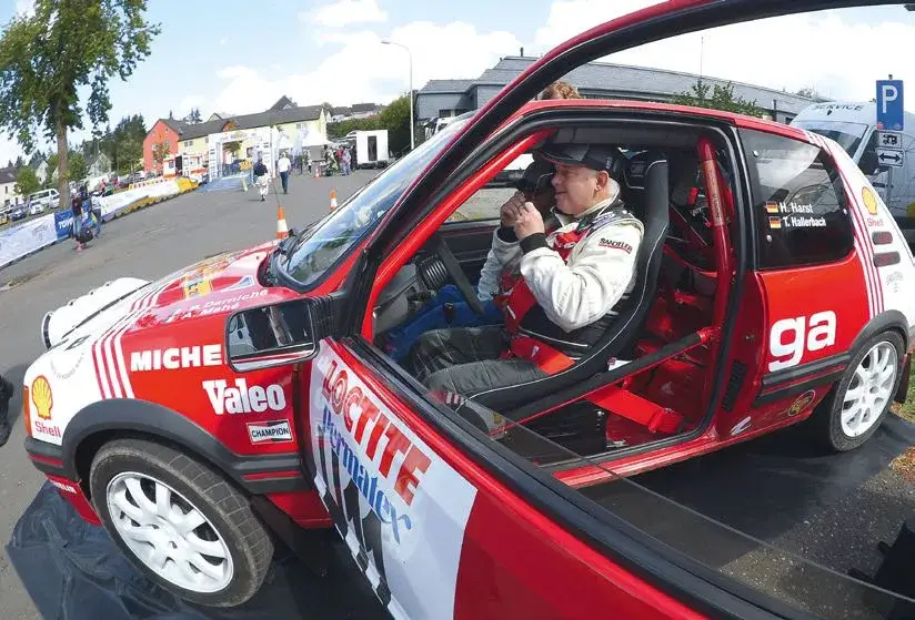 Herbert Harst fährt leidenschaftlich seinen Peugeot 205 Gti mit seinem Co Timo Hallerbach über die anspruchsvollen Wertungsprüfungen der Vulkankegel des Döhnberges und durch die Obereher Heide.