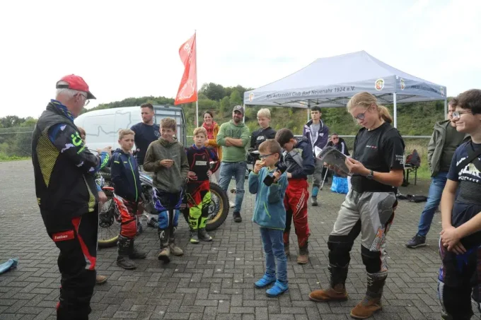 Am Samstag, 30. September, und am Sonntag, 1. Oktober, wurden jeweils bis zu 20 Kinder und Jugendliche pro Tag behutsam auf dem Trial-Sport herangeführt. Warum hat ein Trial-Motorrad keinen Sattel? Warum muss ich auf den Fußrasten stehen? Wie fahre ich eine Kurve? Wie bremse ich ohne umzufallen? Der Wissensdurst der Kinder und Jugendlichen war enorm und wurde Schritt für Schritt von den erfahrenen Trainern gestillt.
