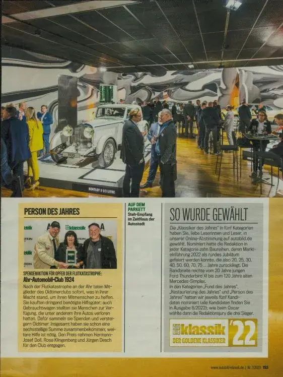 Eine besondere, wenn auch überraschende Ehrung wurde dem Ahr Automobil Club Bad Neuenahr (AAC) am 24. November in der Autostadt Wolfsburg zuteil: Die Auto-BILD-Klassik zeichnete im Rahmen einer Gala die Sieger der „Goldenen Klassiker“ der Jahre 2021 und 2022 aus.