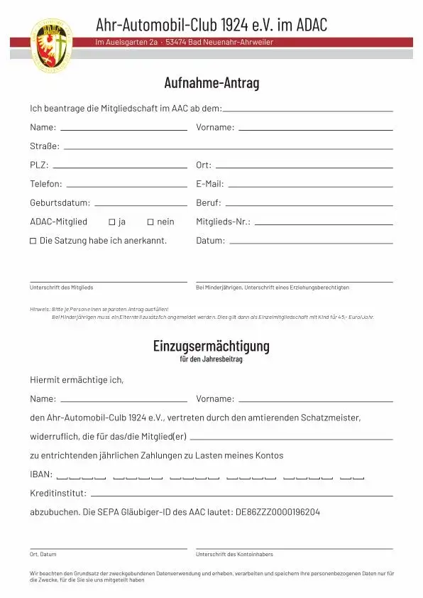 Der Vorstand des Ahr-Automobil-Club 1924 e.V. freut sich über jedes neue Mitglied!